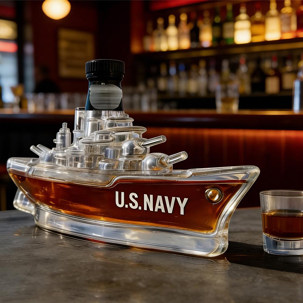 Raise a glass to naval legacy. This isn’t just a decanter; it’s a command center for your finest whiskey. Meticulously crafted into the powerful silhouette of a classic American battleship, it transforms your spirits into a display of undeniable authority and sophistication.